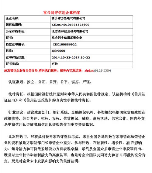 【新聞動(dòng)態(tài)】萬(wàn)新電氣--重合同守信用示范企業(yè)